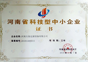 2020年9月9日——河南大張過(guò)濾設(shè)備有限公司榮獲“高新技術(shù)企業(yè)”證書
